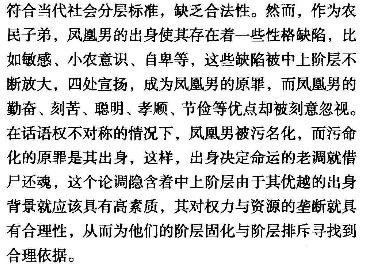 凤凰男的出现,客观上促进了阶层的尽快融合。使得有分离倾向的市民价值观和农民价值观能够在一定条件下部分统一起来。