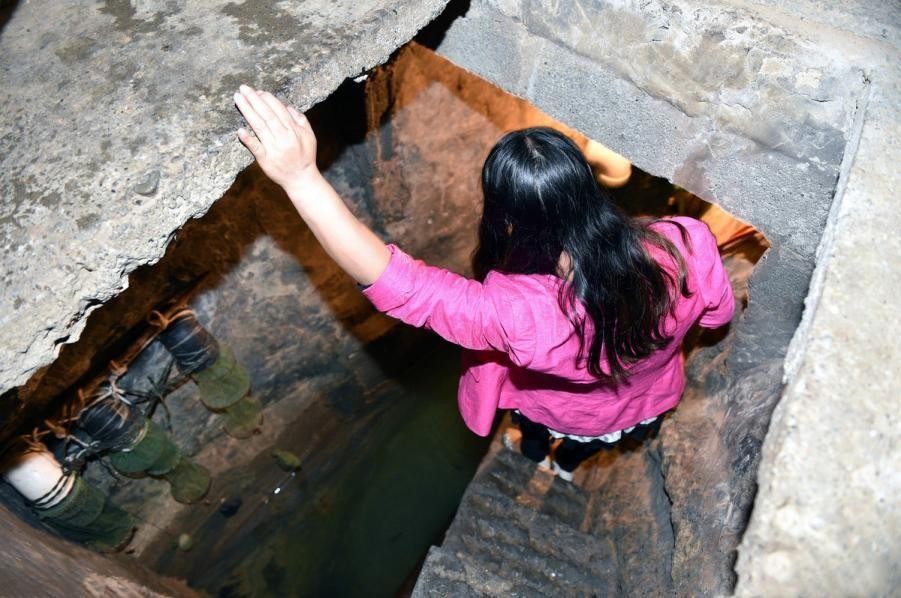 就这样,日复一日,洞口越挖越深,十米,井壁上已经看不到阳光了;十二米,几乎探不到洞底;十四米,土层渐渐变得湿润;十六米,出现了意想不到的变化!