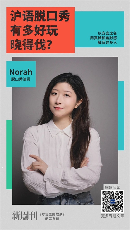 2023年9月,Norah第一次主持了一场沪语脱口秀。门票依然秒速售罄,观众反应热烈,让她看到了方言脱口秀的可能性。次月的黄金周,她和两位演员共同推出沪语拼盘演出。