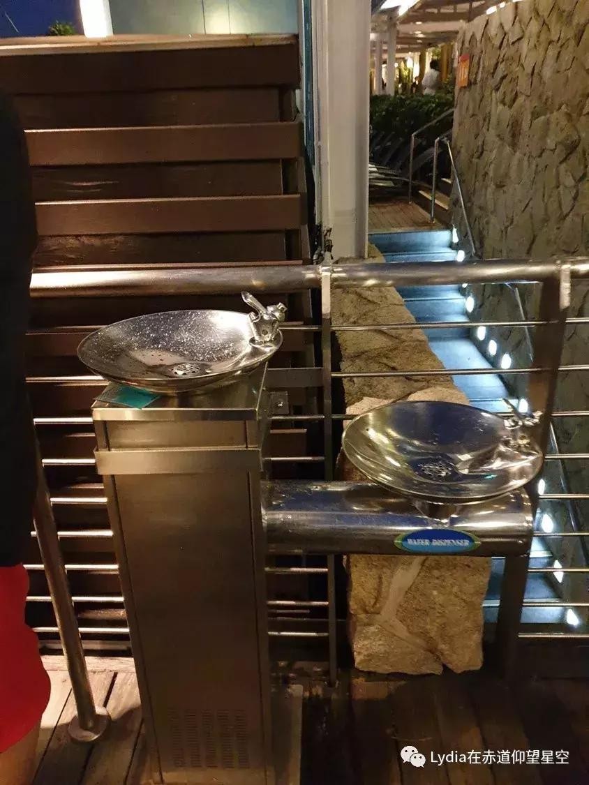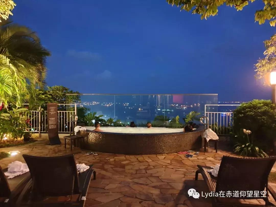 下图是天还没那么黑的时候拍的,你可以看到无边泳池的边外面还有一截,足够你走在上面(当然,只有维护人员才会去那走吧),游客就不要尝试了。