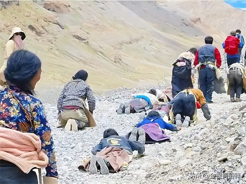 (九)转山与长拜。在西藏等地区工作,经常可以看到在公路、寺庙、山头有大量的来自于各地(包括外国)佛教信众开展转山和长拜活动。这已经成为那里一道极具特色的风景。看着他(她)们那坚定的意志、虔诚的样子、标准的动作,心情是十分复杂的。通常我们不会去干扰他(她)们,但也不由得非常好奇。据了解,有些人一年辛苦下来挣点钱和物资,除了自己勉强维持最低等次的生活,大部分捐给了寺庙,还有一部分就是投入到转山和跪拜的活动中去了。这两项活动,在他们的心目中,与手持转经筒不停的转经一样,是最虔诚的修行方式之一。他们认为,只要心够诚、做到位,不定哪一刻或哪一世就可以改变当下的状态,这也是主要目的之一。显然这是宗教文化长期熏淘的结果,但我更愿意将理解为人们对大自然的崇敬或敬畏。