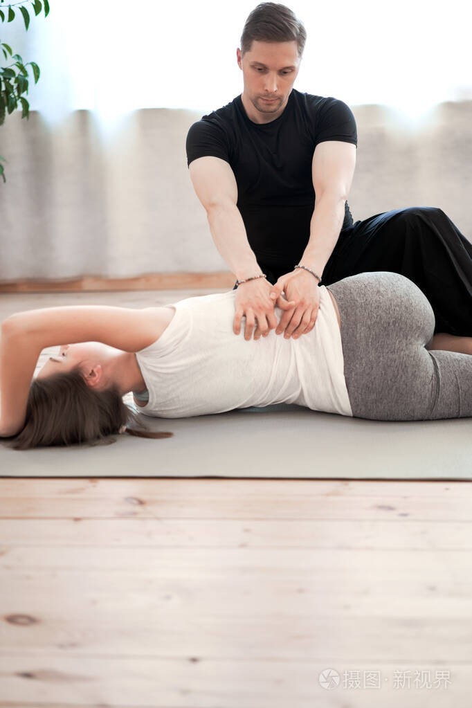 一名学员跨坐在教练身上,做着一些放飞自我的动作,而教练则是双手扶着学员的腰,从远处看上去还以为他们在干什么见不得人的事。