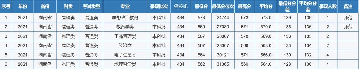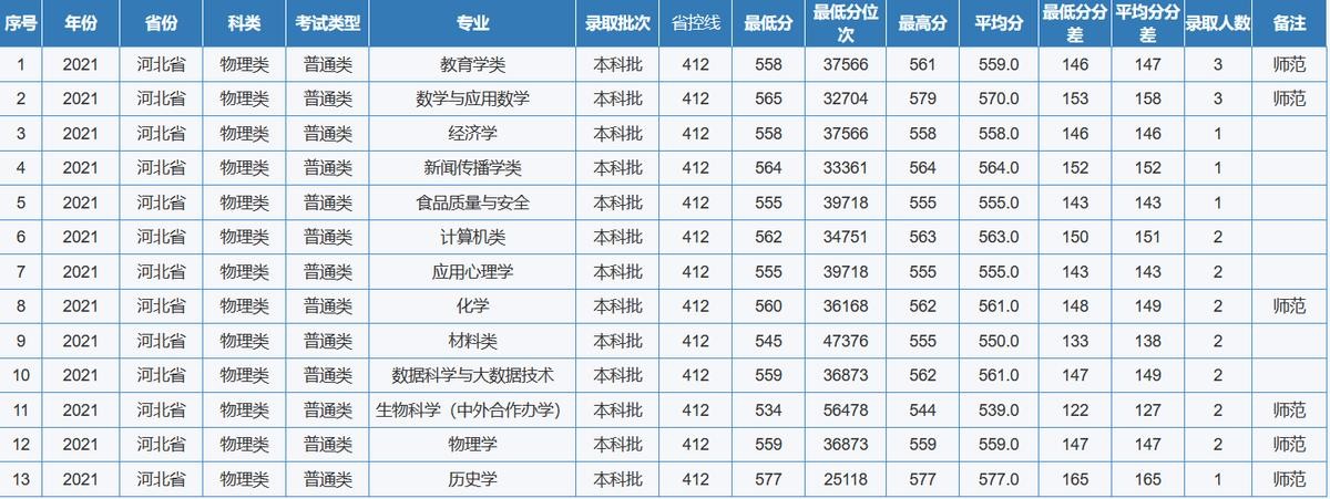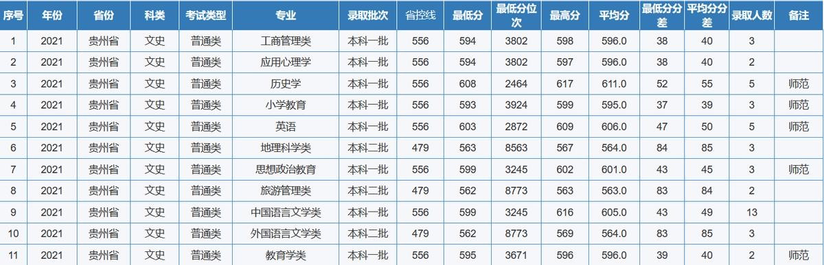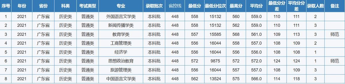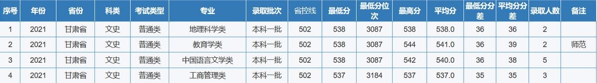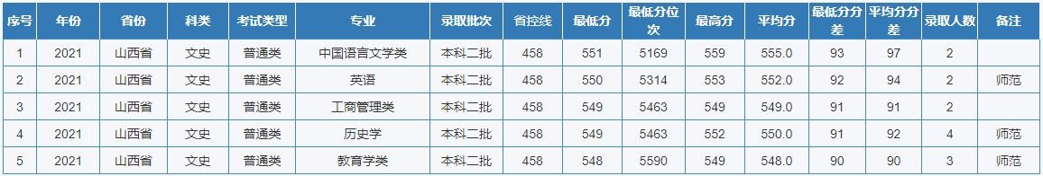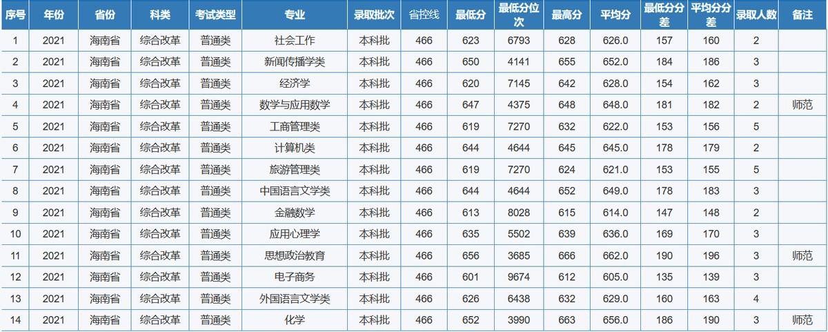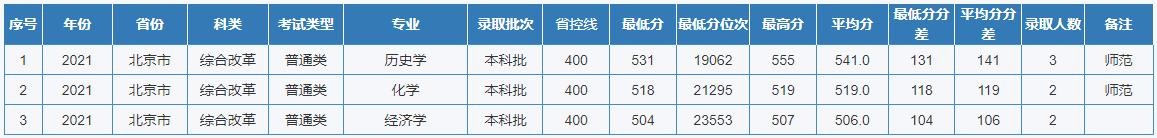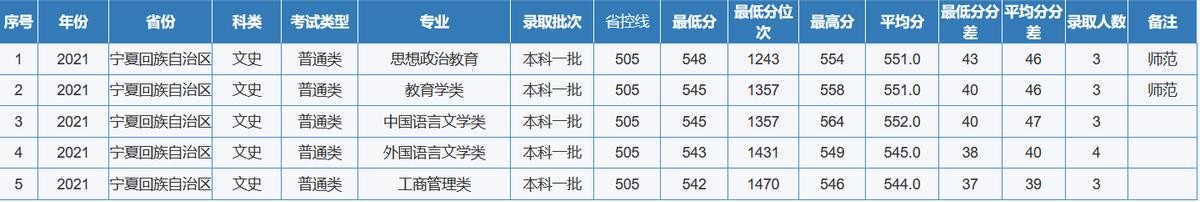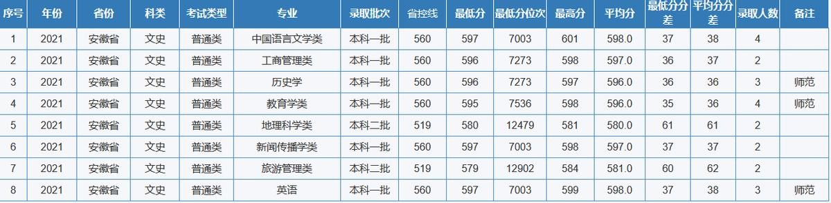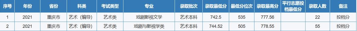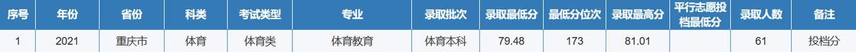 重庆师范大学2021年全国各省(区、市)录取分数线
