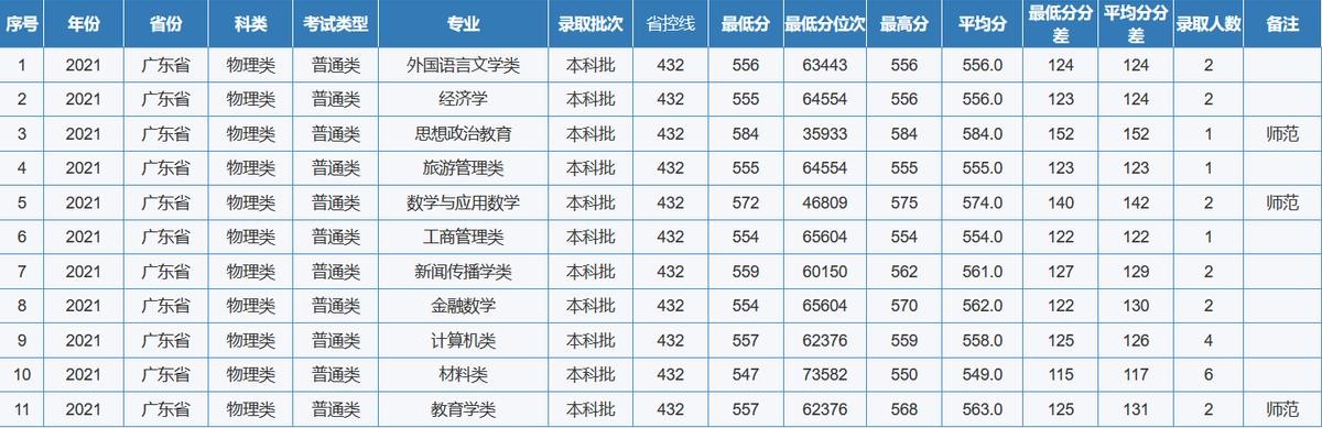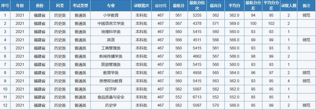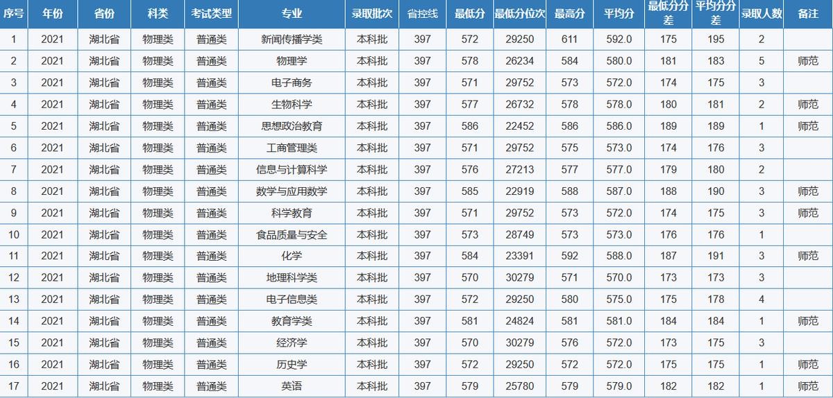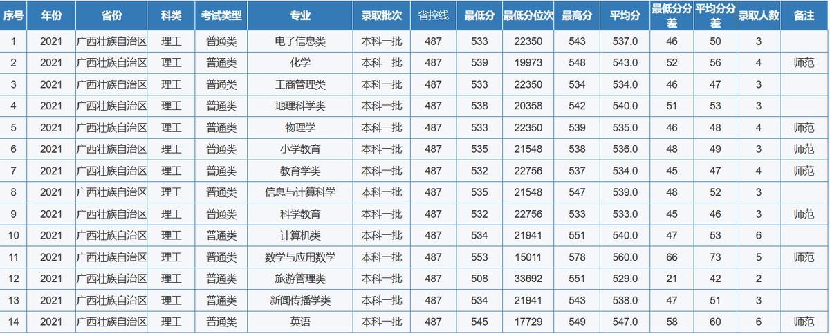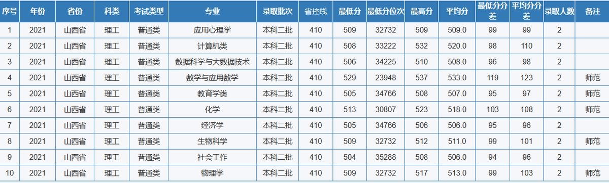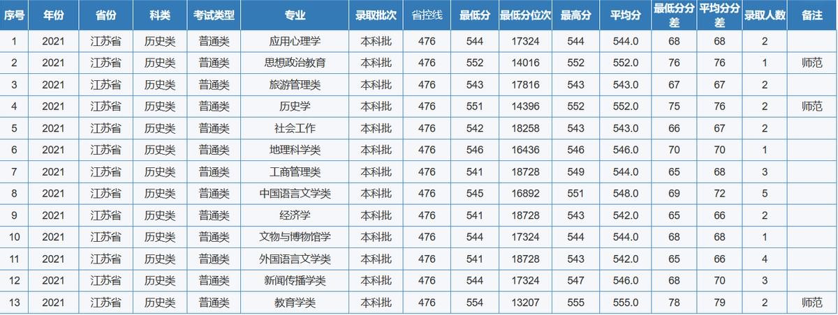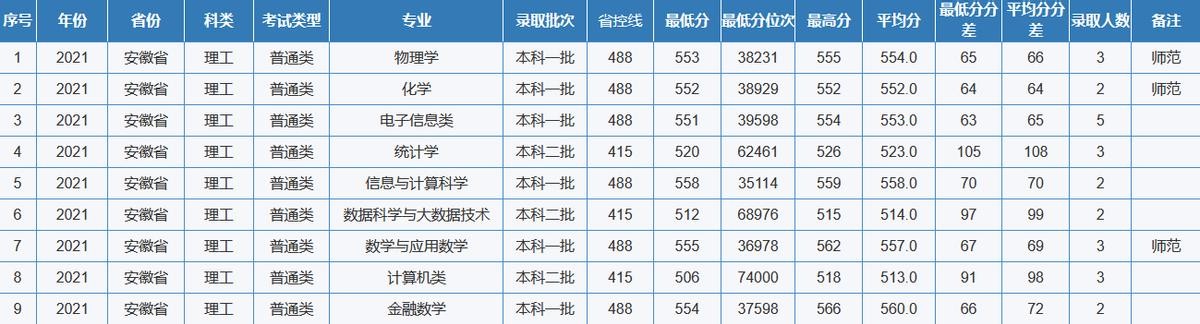重庆师范大学2021年全国各省(区、市)录取分数线