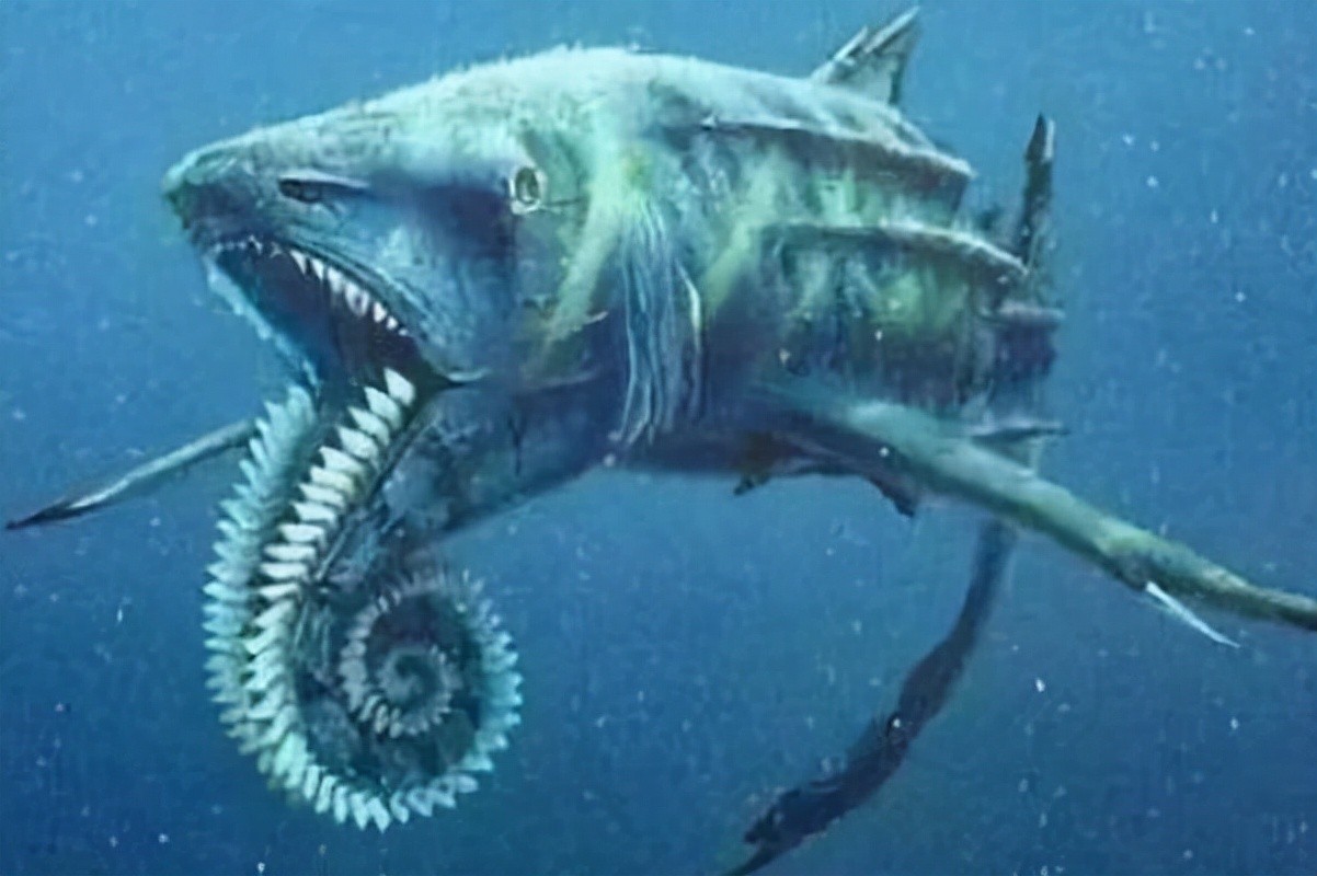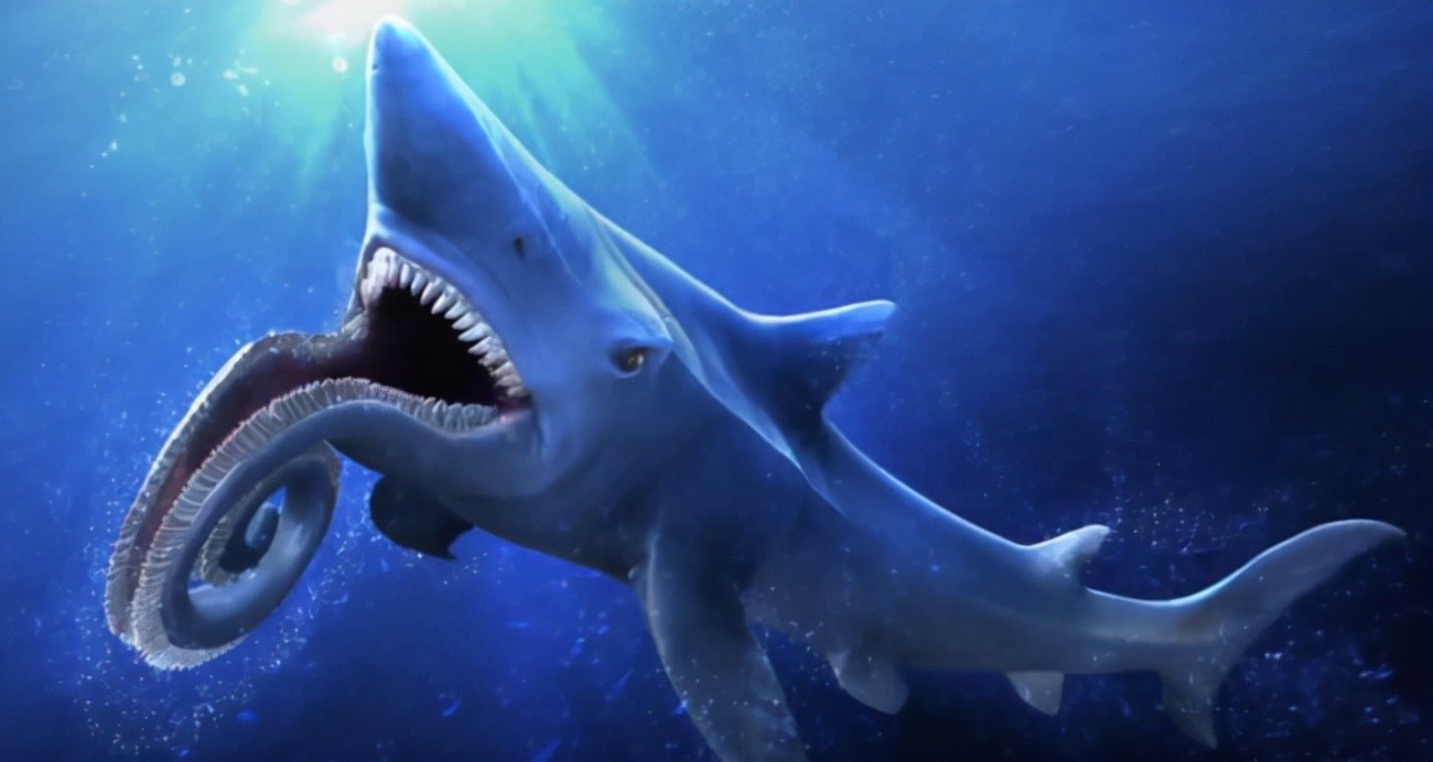 最大的旋齿鲨有15米,进食的时候直接锯齿般大嘴一张,锋利的齿牙直接咬住猎物,整齐锋利的牙齿可以让它们死咬住猎物不松口。