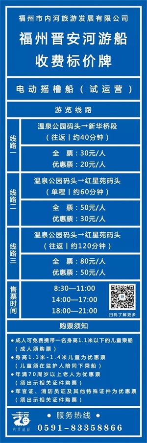 线路1:晋安河游船-金鸡山公园