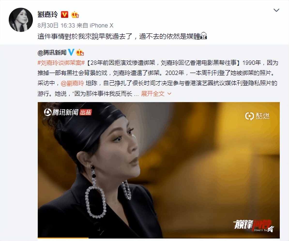 后来,刘嘉玲在一次采访中谈到当年被绑架的事情,多年过去她说自己原谅了当时绑架自己的所有人,以及还有宣传报道扭曲这件事情的媒体们。