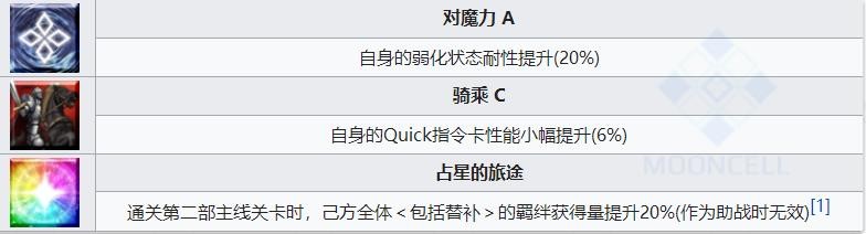迦勒底的吐槽役,小清新,似乎是天然呆(比如在邪龙百年战争里对法国士兵说英语,拿着盾说刀背打等等)。