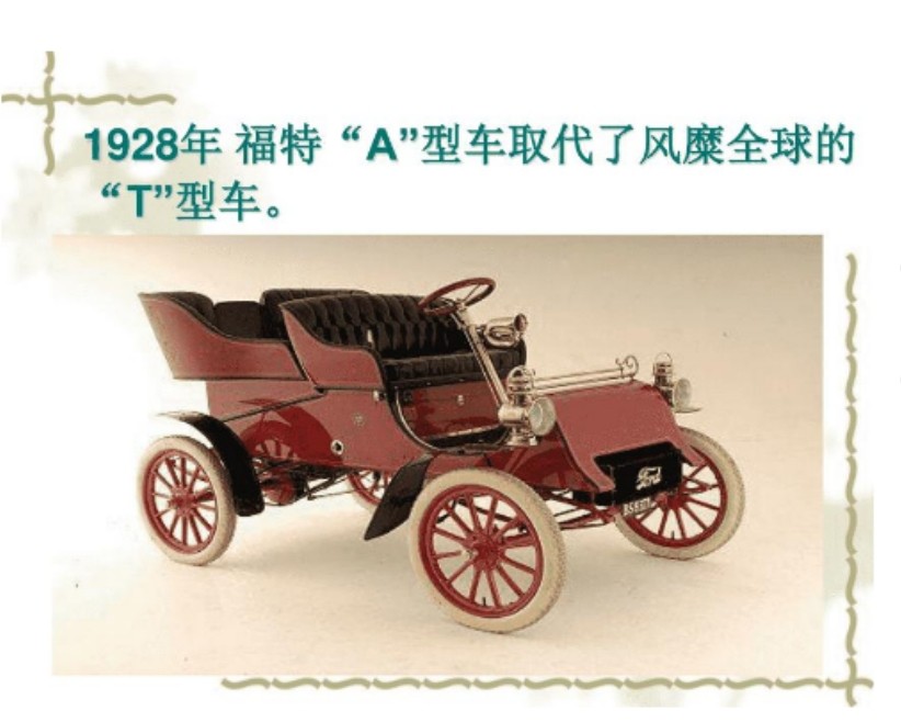 1908 年,福特公司开始生产 T 型车,这款车以其简单实用、价格低廉的特点,使汽车开始走向普通大众,为汽车工业的发展奠定了市场基础。