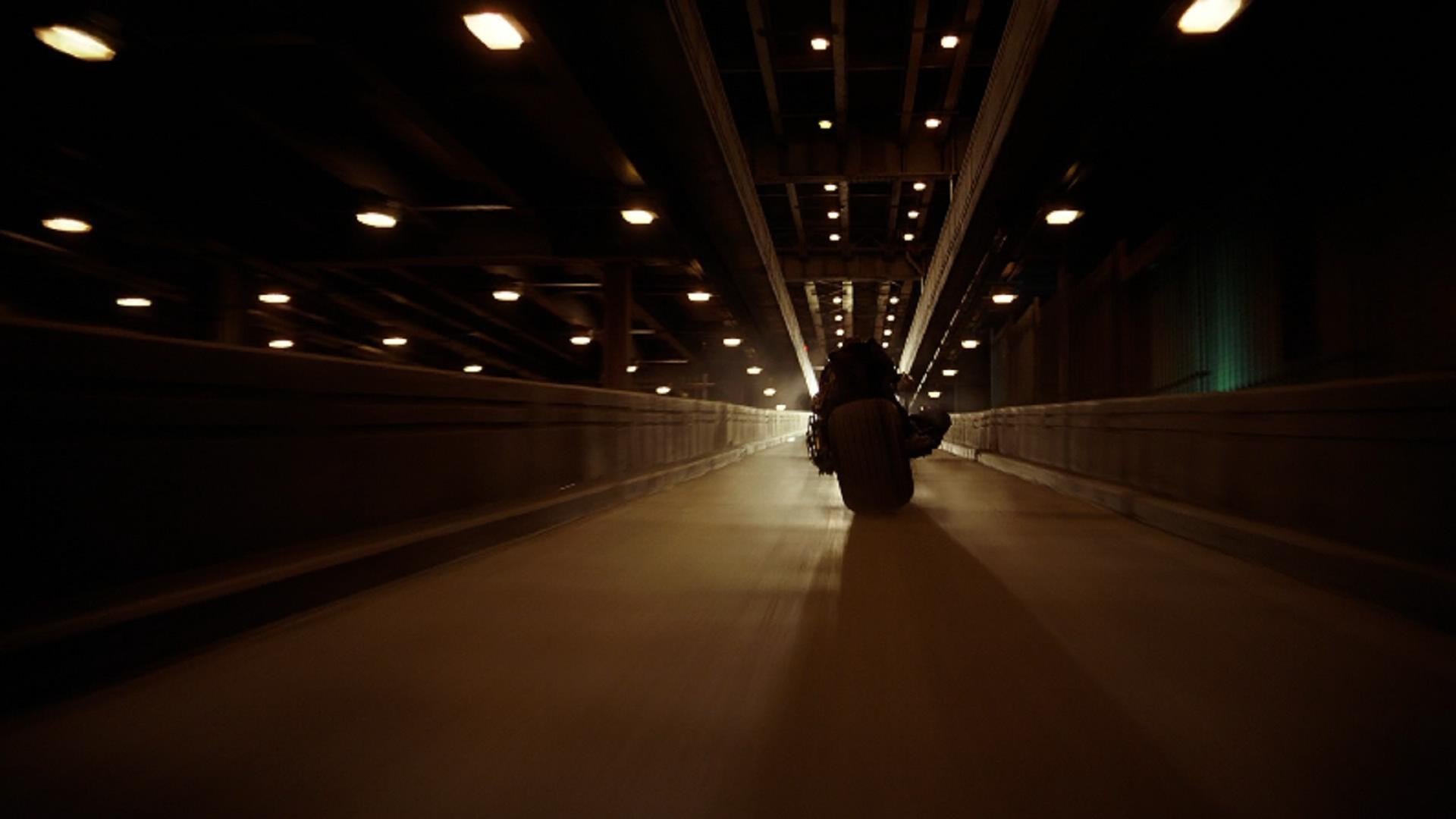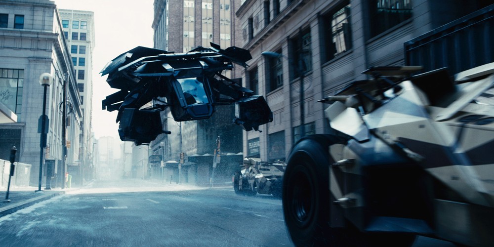 从道具设定来看,原是工程装甲车的蝙蝠车先是改装成了酷帅的摩托,给猫女驾驶,还多了部螺旋桨在底部的小飞机,更有漫画感了。