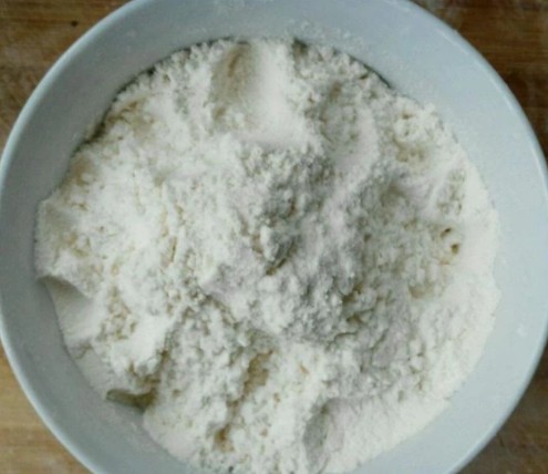 2、白面上笼蒸熟,放在案板上擀开,用细箩筛过,冷水泡上备用。