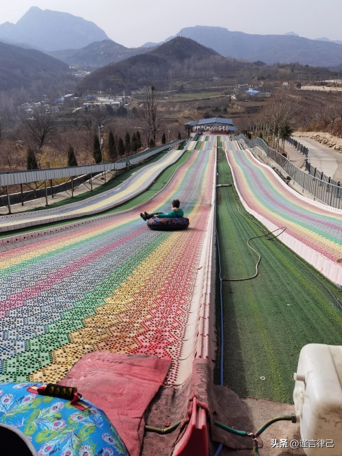 长长的滑道,由于风吹日晒雨淋已经淡化的彩色,虽然增加了一丝破败感,但丝毫不影响孩子游玩的乐趣。当小朋友被告知只能玩一次时,还意犹未尽的想再玩一次。所以,购买套票时,可以考虑多买一次七彩旱滑,满足一下孩子的心愿。