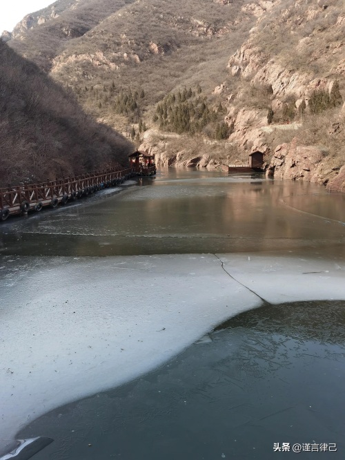 崇山峻岭之间,夹杂一道山谷,山谷中水流不断,时而聚集成湖面,为冬天的荒山增加了一丝生气。