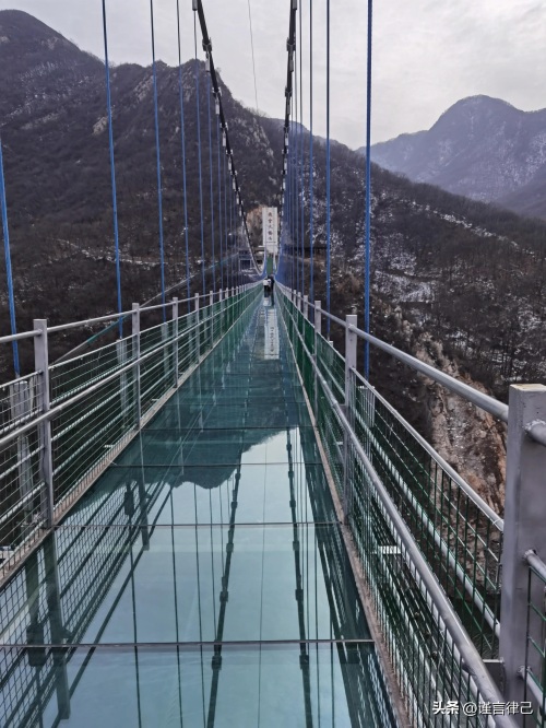 终于到达高空玻璃桥,走在万丈高空,透过玻璃能看到下方的流水和山崖,恐高症慎行。颤颤巍巍的走在玻璃上,桥有着些许的摇晃,整体比较平稳。