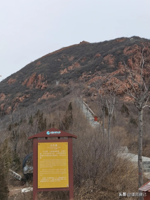 再往上爬,到达一处平台,拾阶而上,就到了山顶最高处,以红色岩石为主的红石寨,尚存有清朝末年的古寨。从红石寨下山,可以选择乘坐高山滑索下山。