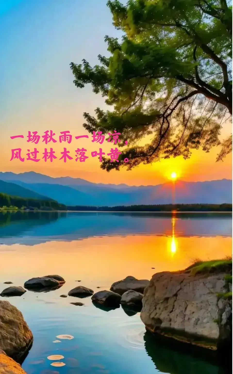 “一场秋雨一场凉,风过林木落叶黄。