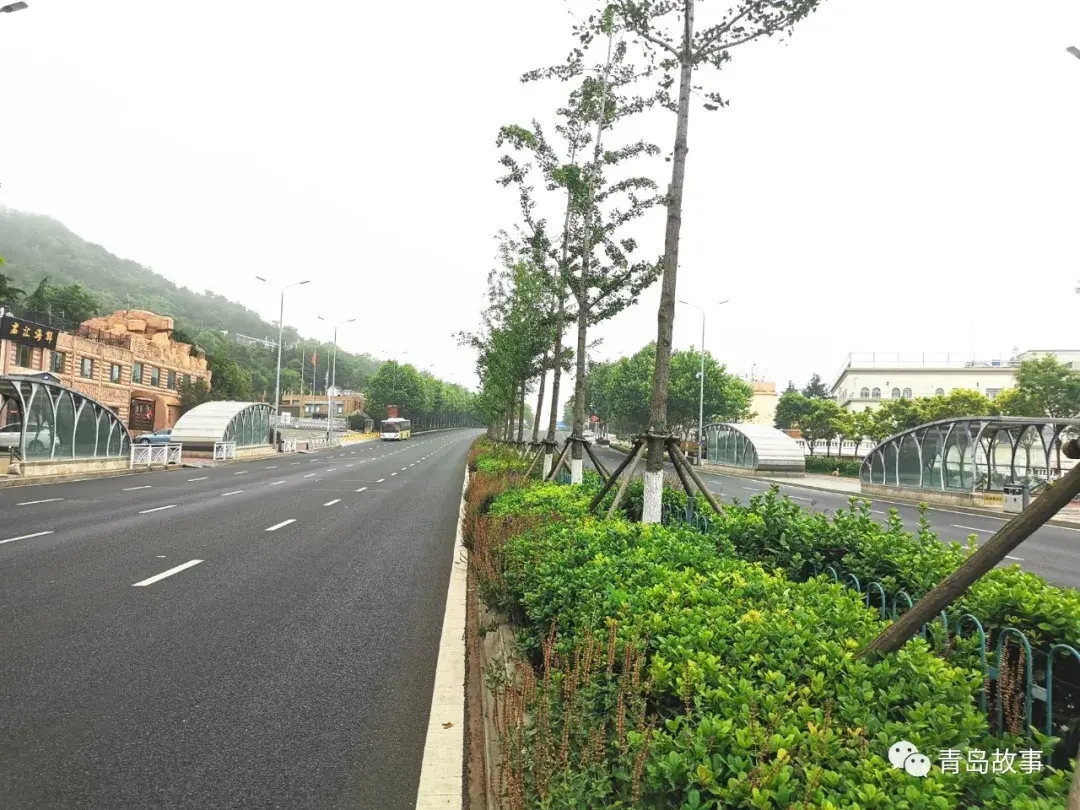 香港东路由此止,再往东,原湛流干路东段与流清河向东至垭口处区段的道路,已更名为崂山路了。