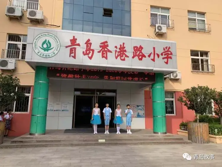 过了延安三路,是香港中路,这里以前是偏僻的郊区,如今变成了政治、金融、商贸、文化旅游中心。北边路口还保留着青岛公立湛山小学旧貌,学校建于1927年,1940年扩建,中式四合院风格、中间拱门两边出檐的建筑。