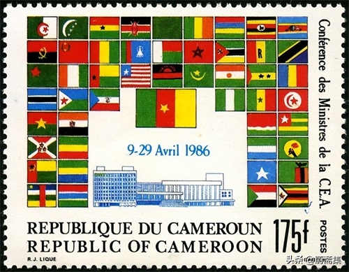 1986年4月,联合国非洲经济委员会部长级会议在喀麦隆最大城市杜阿拉举行,喀麦隆为此发行了纪念邮票,图案为会议中心以及参加会议的50个非洲国家的国旗。