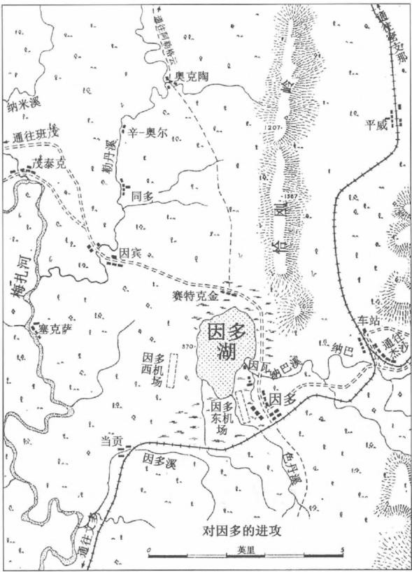 日军武兵团指挥官林义秀少将,得知英印军约1个旅的兵力正在因多湖周围出没,一部已经在因多湖东岸的东机场附近构筑防御阵地,不敢怠慢,集中第24独立混成旅团之141独立步兵大队、第51步兵联队第2大队和从茂卢撤下来的114步兵联队第3大队共3个大队的兵力阻击,重点是湖东面威尔金森支队的阵地。
