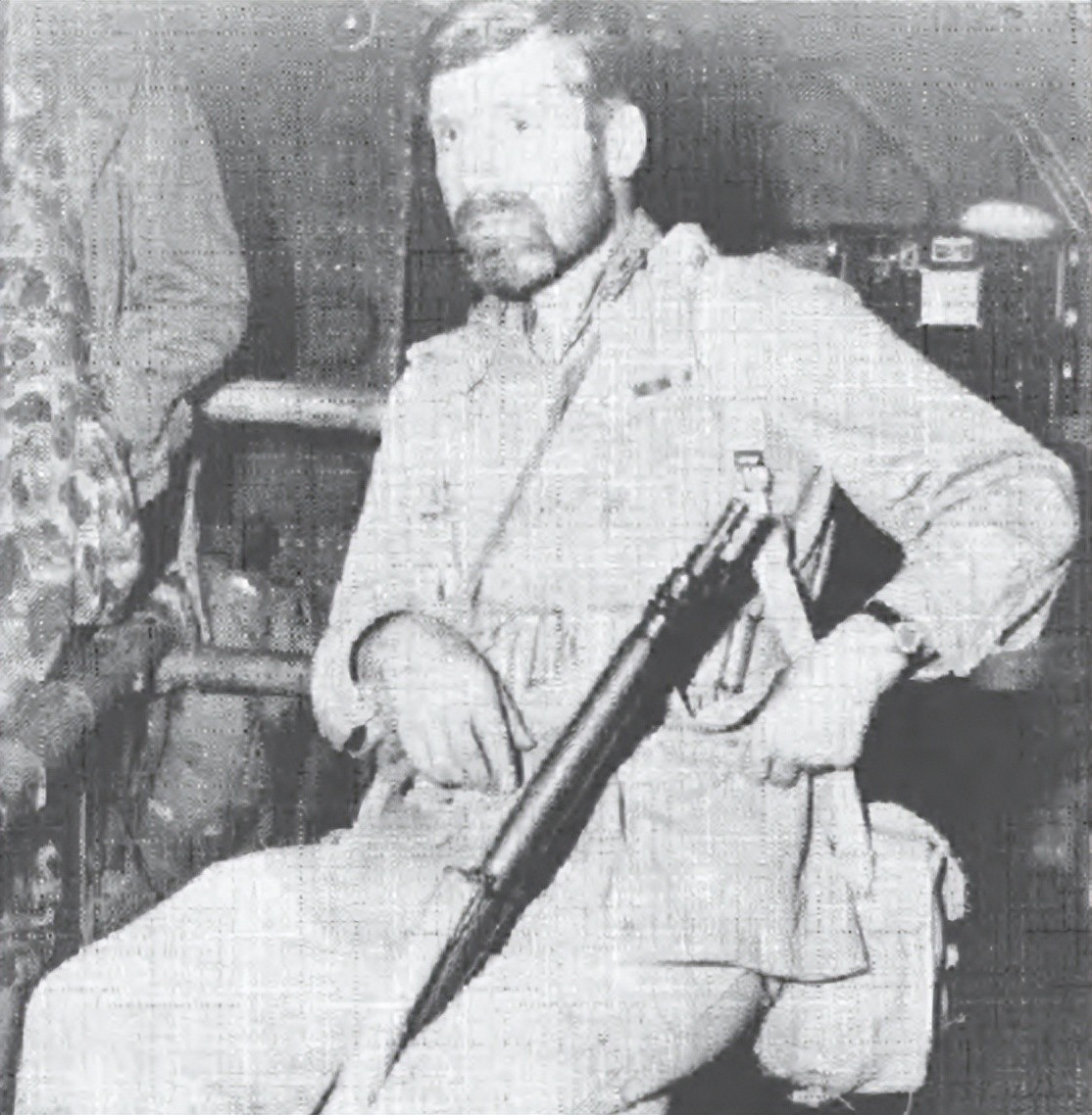 温盖特少将生前的最后一批照片之一,第二次“钦迪特”远征期间,他坐在C-47运输机上,腿上倚着一支步枪。