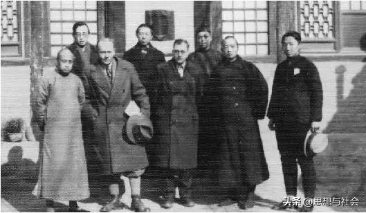 1934年,梁漱溟(前排左一)接待来参访乡村建设的丹麦客人