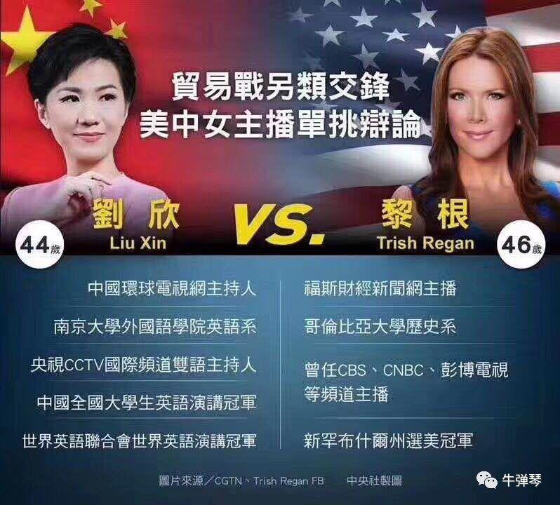◆北京时间5月30日上午,央视外语频道CGTN的主持人刘欣与福克斯商业频道女主播翠西•里根就中美贸易战问题,进行卫星连线辩论。这是史上首次中美两国女主播“约辩”。