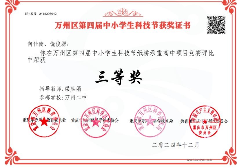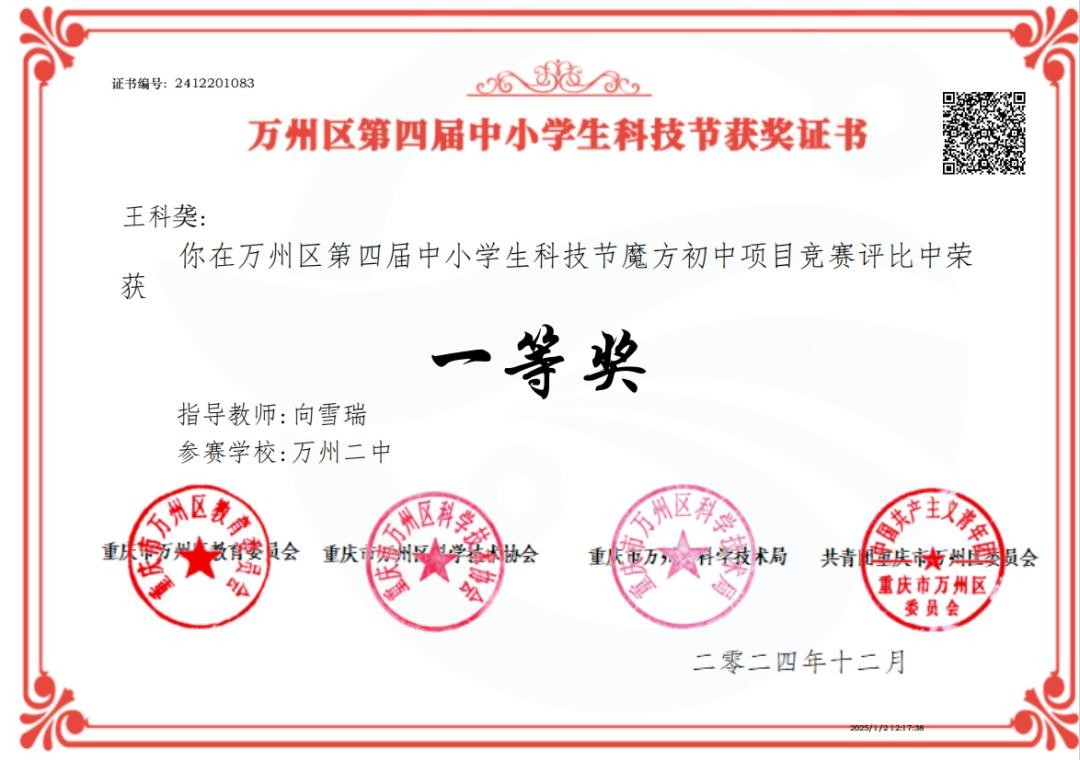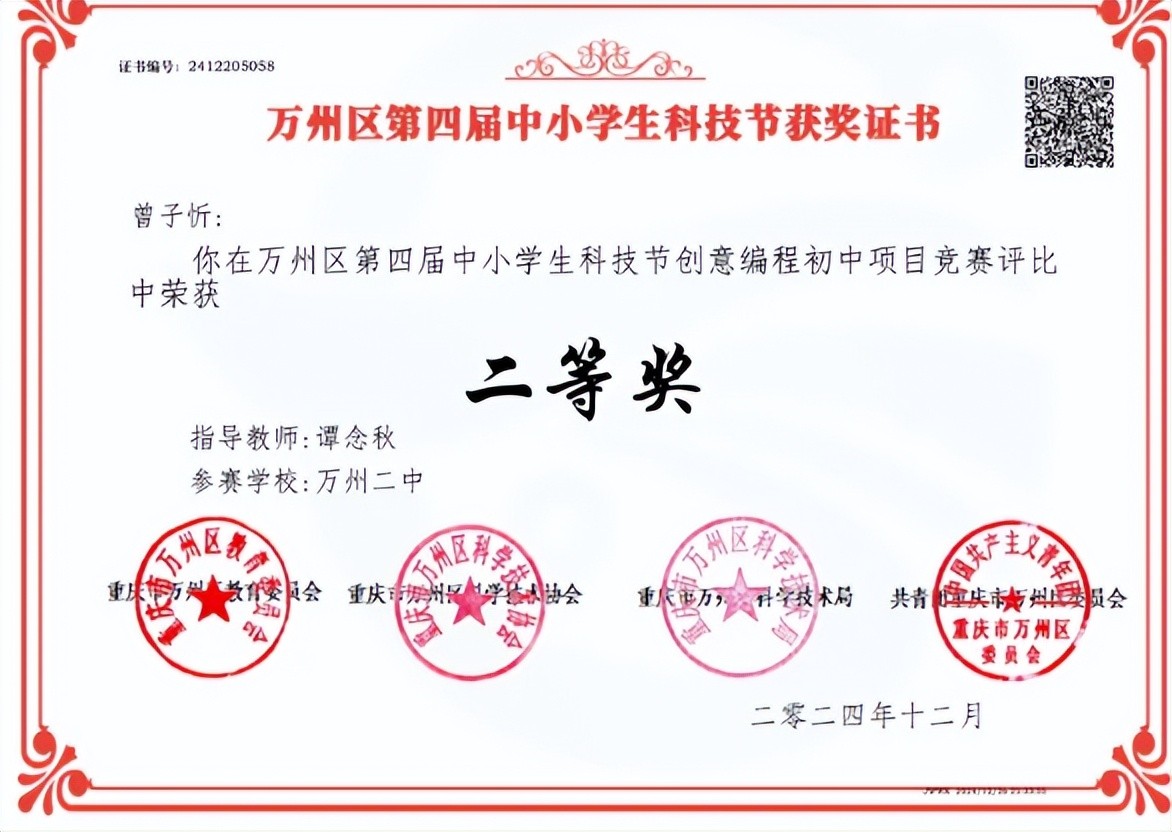 近日,万州区第四届中小学生科技节圆满收官,二中学子表现卓越,斩获众多奖项,满载而归,尽显科技教育雄厚实力。