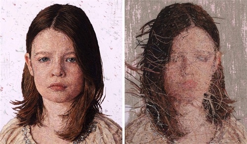 肖像刺绣的背面