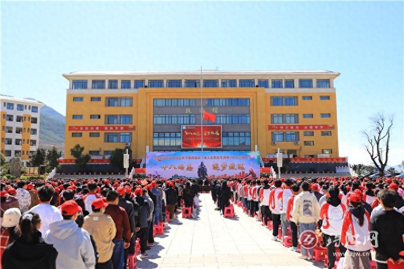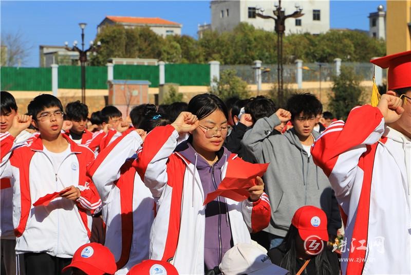 学生集体宣誓,气势磅礴,是对高考的无畏宣战。