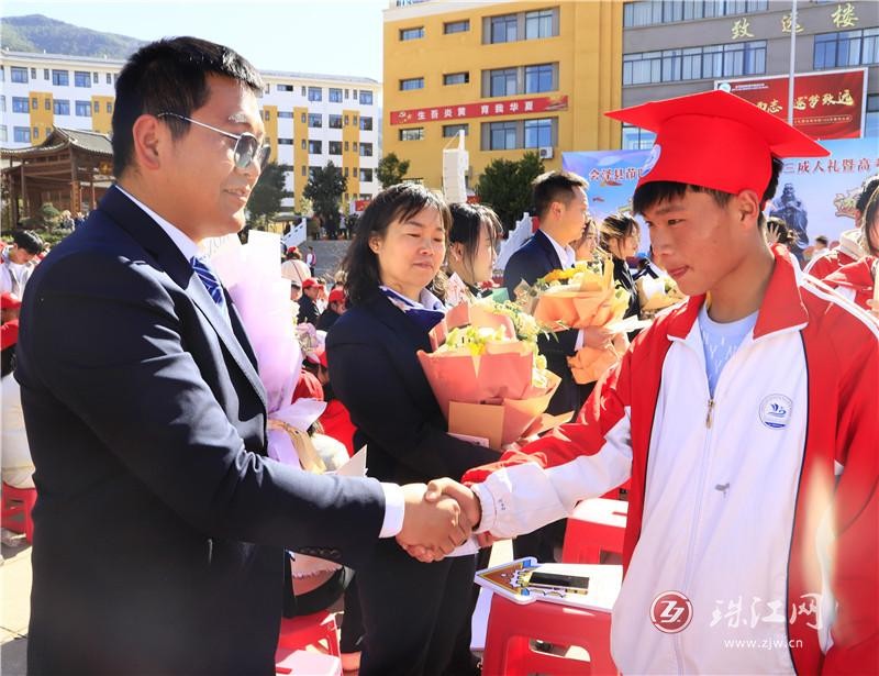 校长颁发纪念册,家长佩冠庆成年