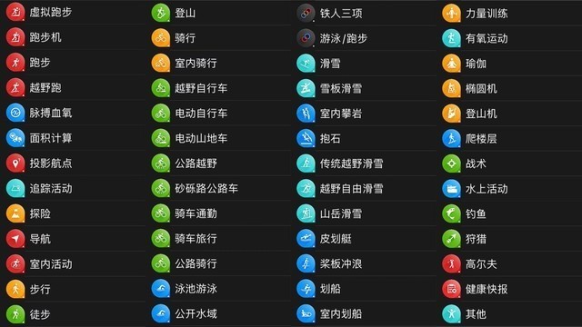 对于一款专业运动手表来说,硬核的外观设计仅仅是基础,丰富的内置功能才是真正的竞争力。基于出色的硬件配置,两款手表都支持超过五十种各类室内和户外运动(预设+自定义),还新增了虚拟跑步、骑车通勤、传统越野滑雪、室内攀岩、铁人三项等15款运动项目,可以大幅提升手表的功能性与可玩性。