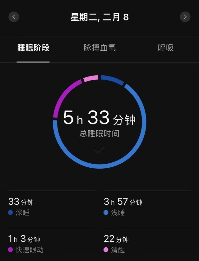 不仅如此,GARMIN INSTINCT 2 SOLAR还可以清晰地显示出不同时间的睡眠状态,共分为四项“清醒、浅睡、快速眼动、深睡”,大家可以凭借它的数据来调节自己的睡眠时间、睡眠方式,以此来改善大家的睡眠质量,防止因睡眠不足而引起的种种睡眠疾病。