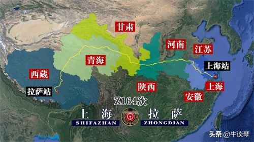 Z164次列车是由上海开往西藏首府拉萨直达特快列车,途经上海、江苏、安徽、河南、陕西、甘肃、青海、西藏8省市区。沿京沪铁路、陇海铁路、兰青铁路和青藏铁路运行。