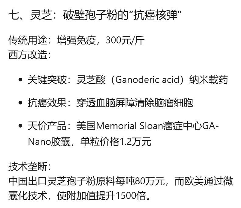 这些看似魔幻的现实,正撕开一个残酷真相:我们祖辈用了千年的草药,正在被欧美实验室改造成普通人用不起的“抗癌武器”。DeepSeek追踪全球357项专利数据,揭露这7种被低估的中药,如何在西方实验室完成“身价暴涨10万倍”的逆袭。